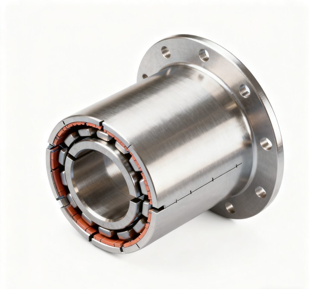 Bearing bushings (also known as sleeve bearings) are the oldest and simplest type of sliding bearing in mechanical engineering. They do not rely on rolling elements to reduce friction, but rather on the sliding contact between surfaces to support shaft movement. Essentially, a bushing is a hollow cylindrical or flange-shaped gasket fixed to a bearing housing. When the shaft rotates or slides within the bushing, a lubricating film (whether liquid, grease, or solid lubricant) forms between them. This film separates the metal surfaces, achieving the purpose of load bearing and friction reduction.